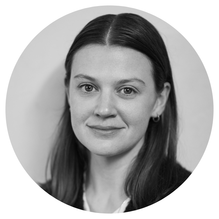 Black and white portrait of a young woman with straight, dark hair, wearing small hoop earrings and a light-colored top, looking directly at the camera with a neutral expression.
